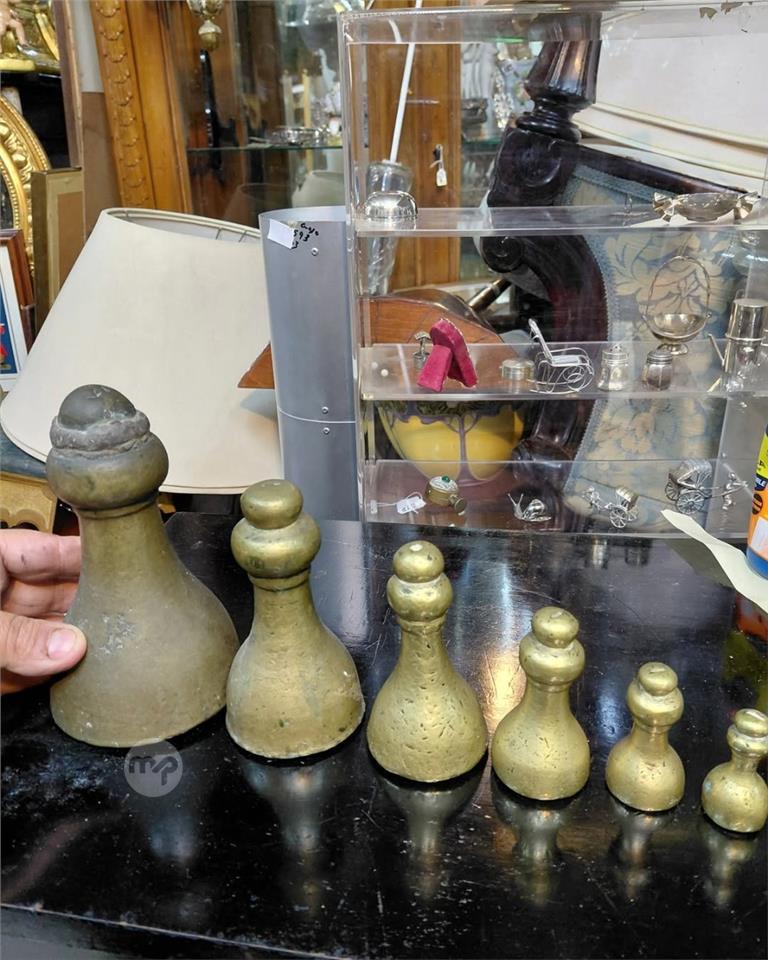 Set of 6 Genuine Antique 18th, 19th century Solid brass Maltese weights setP