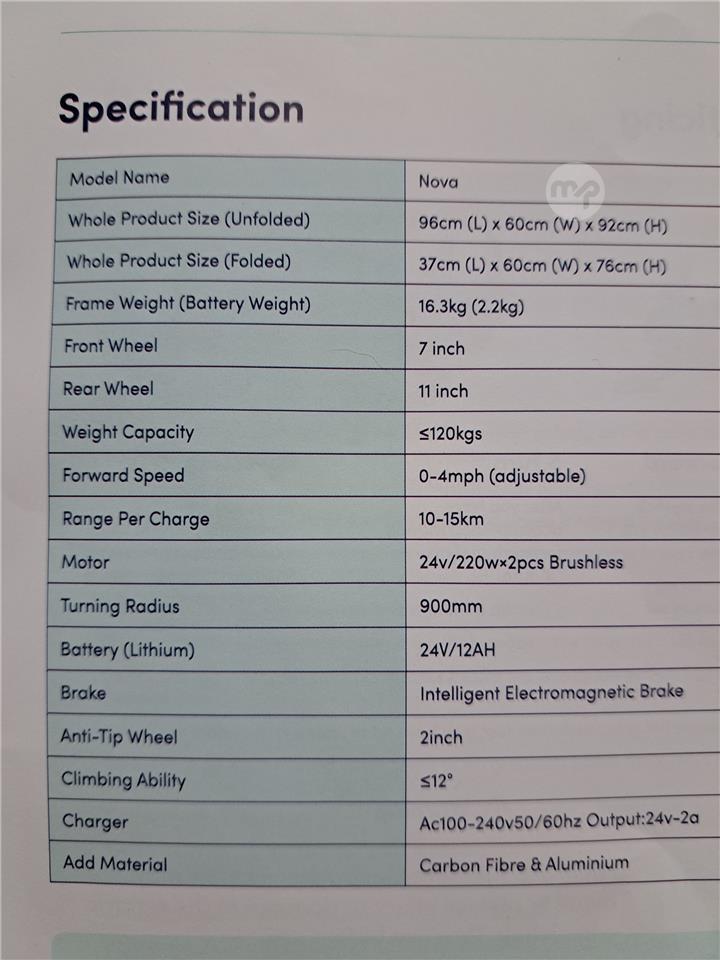 Wheelchair Electric, NOVA, ultralight carbon, foldable,