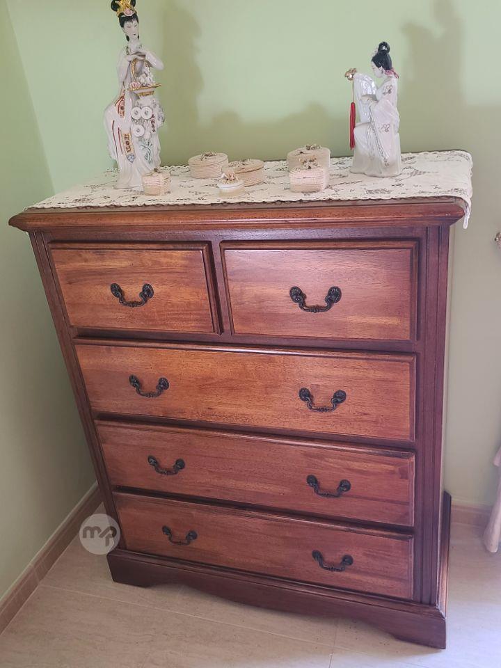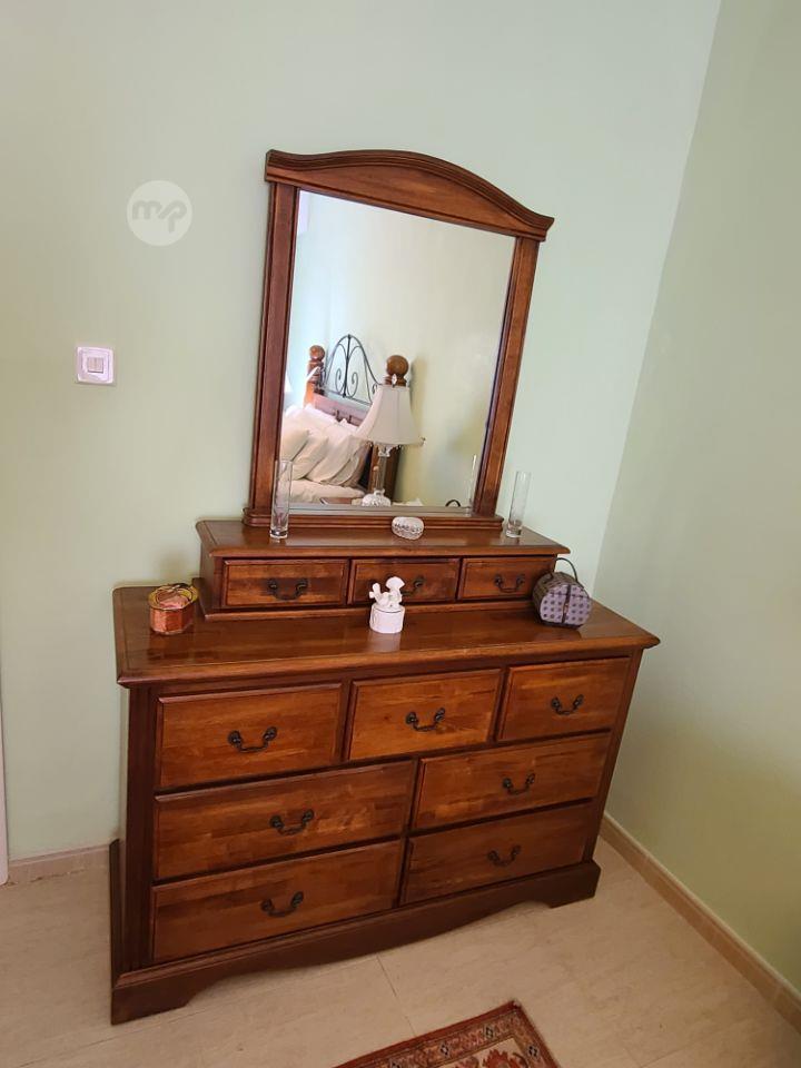 Solid wood American Classic style . Double bed 200cm x 200cm with headboard . Two bedside tables. Dressing table with mirror. Chest of drawers. 6 door wardrobe. Lovely condition.