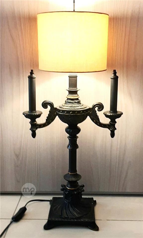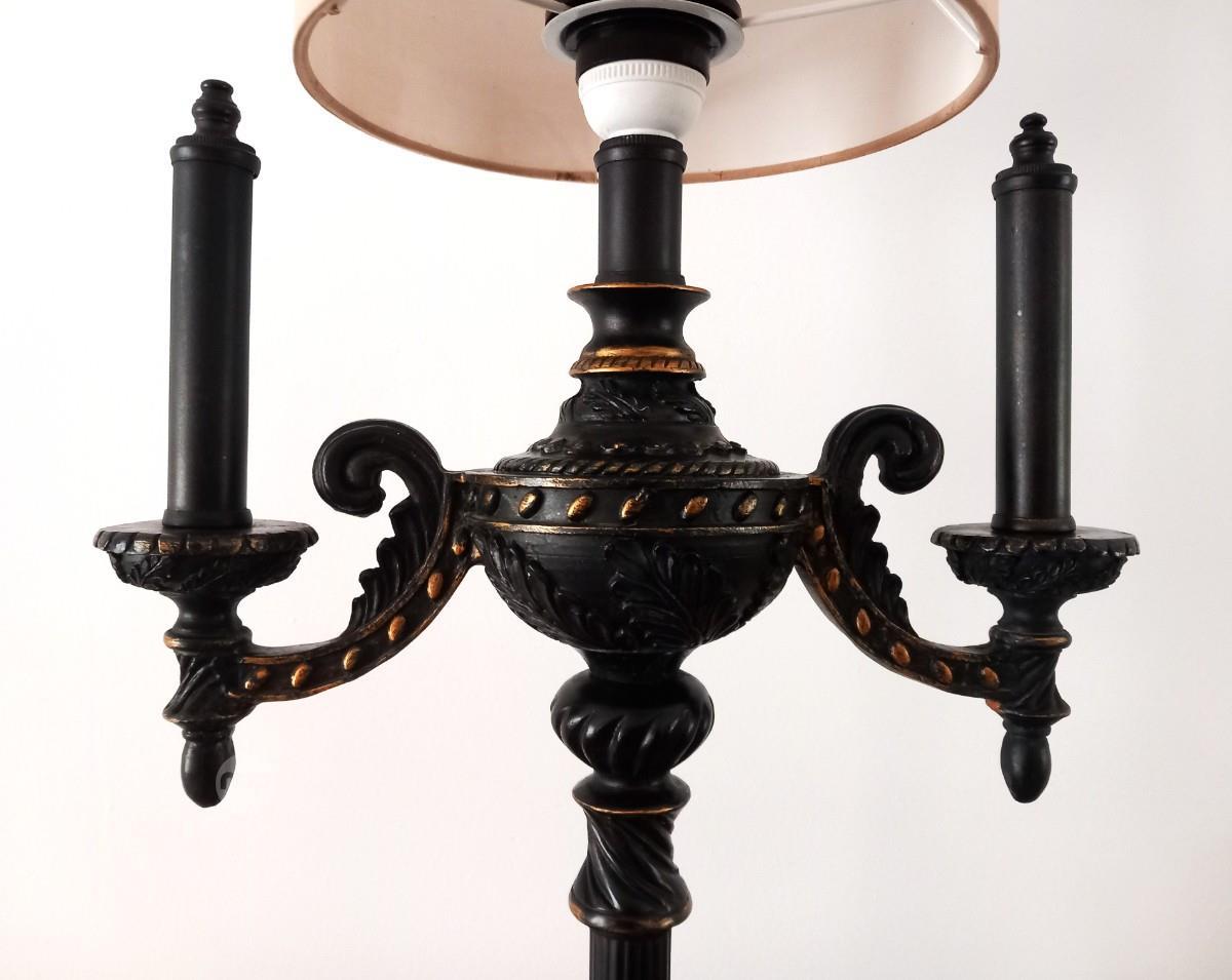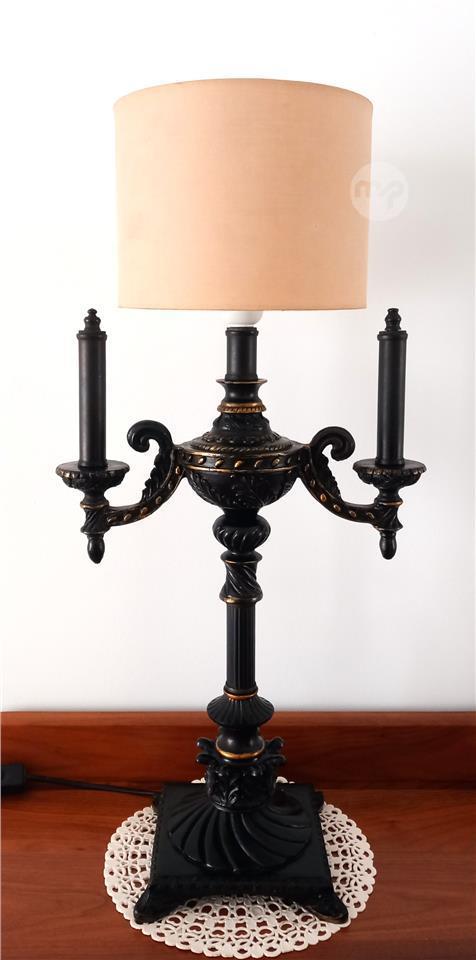 VINTAGE VICTORIAN STYLE BLACK and GOLD CANDELABRA TABLE LAMP