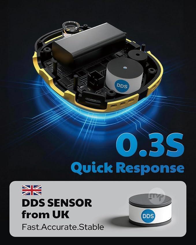 Carbon Monoxide Detector: The AGT-2000 is a portable carbon monoxide detector with a high-sensitivity UK DDS sensor, delivering a rapid response time of up to 0.3 seconds. It accurately detects CO concentrations from 0 to 1000 PPM and continuously monitors environmental changes. Whether at home or on the go, it helps ensure the air you breathe remains safe, protecting you and your loved ones.