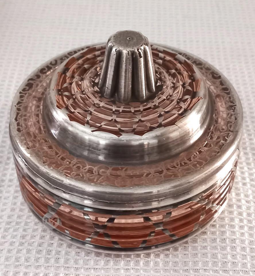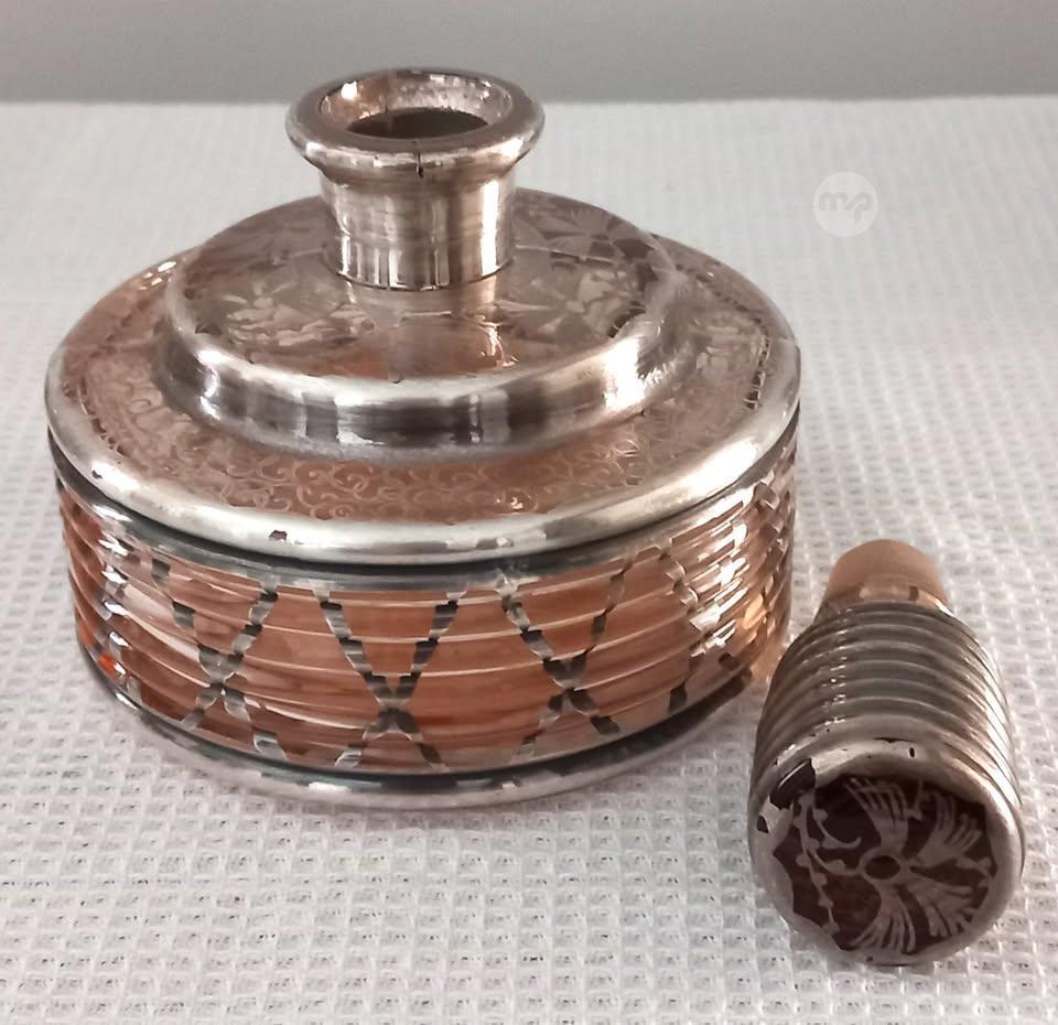 VINTAGE STYLISH GLASS with SILVER OVERLAY DRESSING TABLE SET of 6
