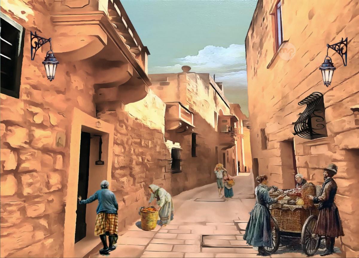 BUSY STEET IN OLD MDINA MALTA ---- ORIGINAL HAND PAINTING OIL ON CANVAS 70X50