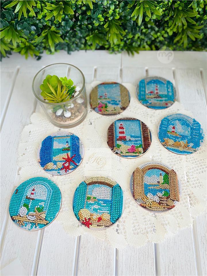 ⟡ Handcrafted Diamond Art Sea-View Coasters (x8)