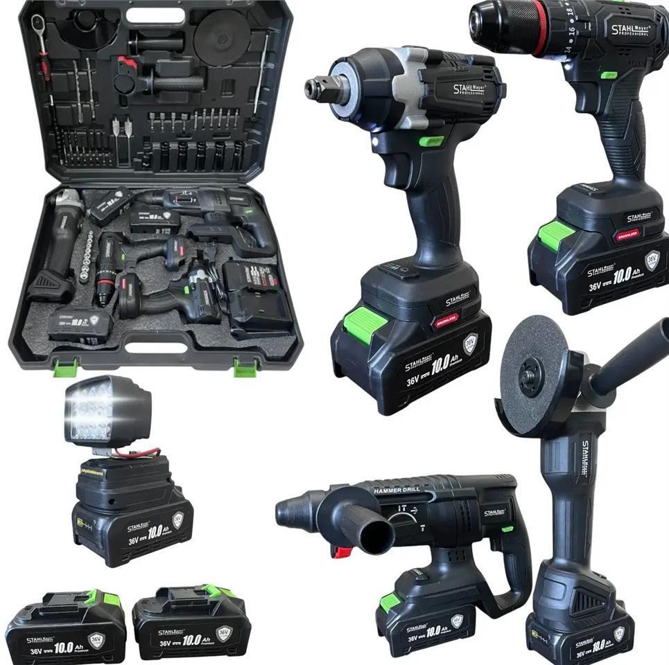 Cordless Combination Wrench/Impact Set, Cordless Screwdriver, Cordless Angle Grinder, Cordless Hammer Drill and USB Lamp STAHLMAYER 36V 10AH + 50 pieces of tools