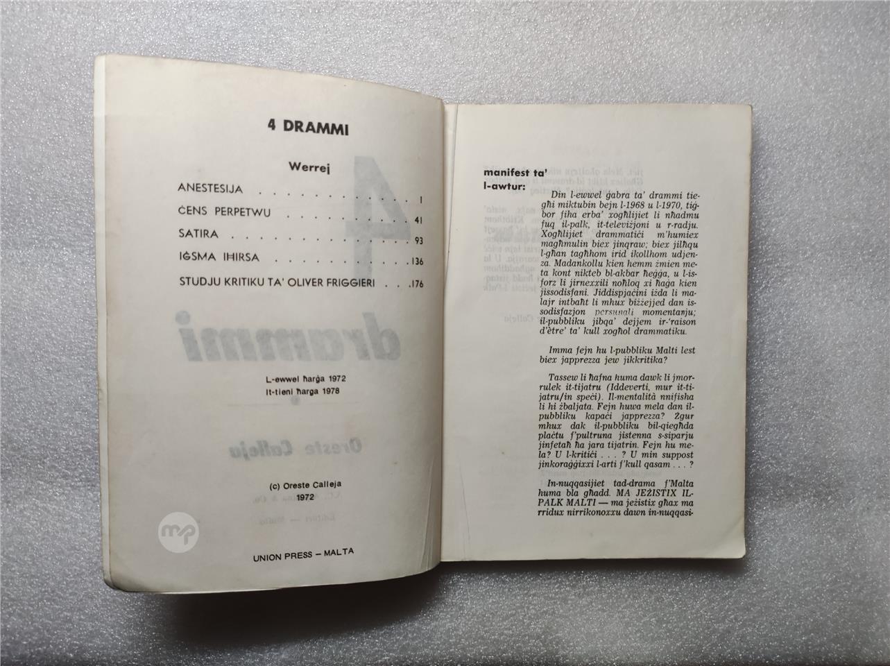 Ktieb mhux komuni - 4 Drammi ta' Oreste Callejja - 1978