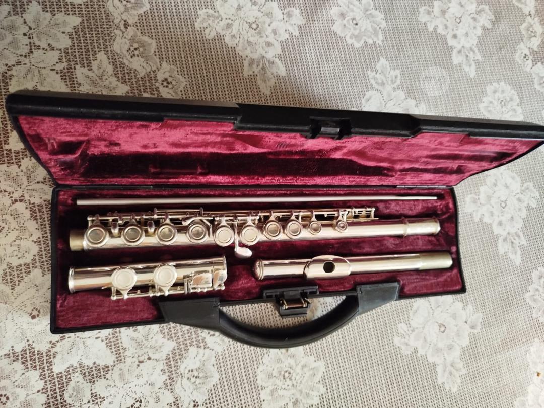 Flute (Buffet Crampon) with a metal music stand and theory books + Bona & a Tune a Day