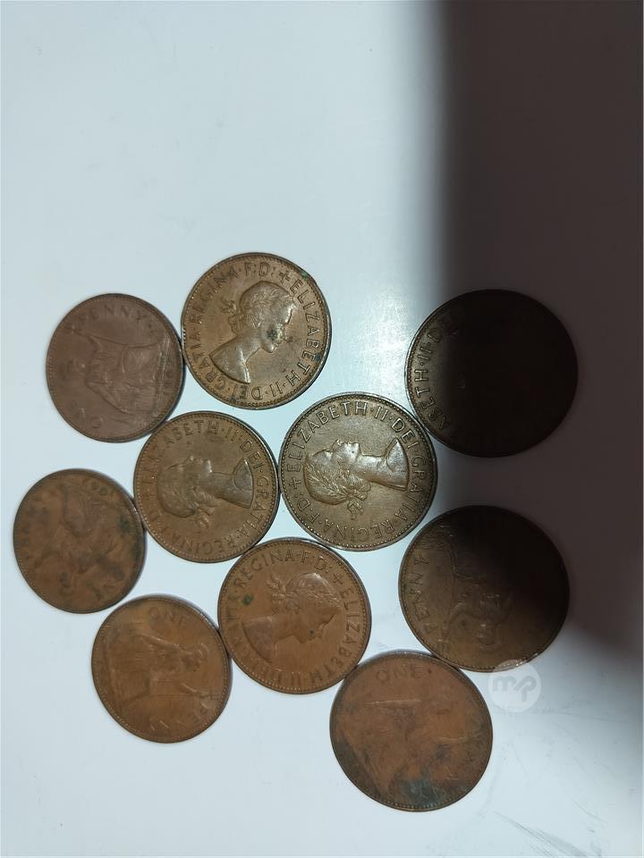 The 1967 UK Queen Elizabeth II penny is a bronze, pre-decimal coin ,,lot 10