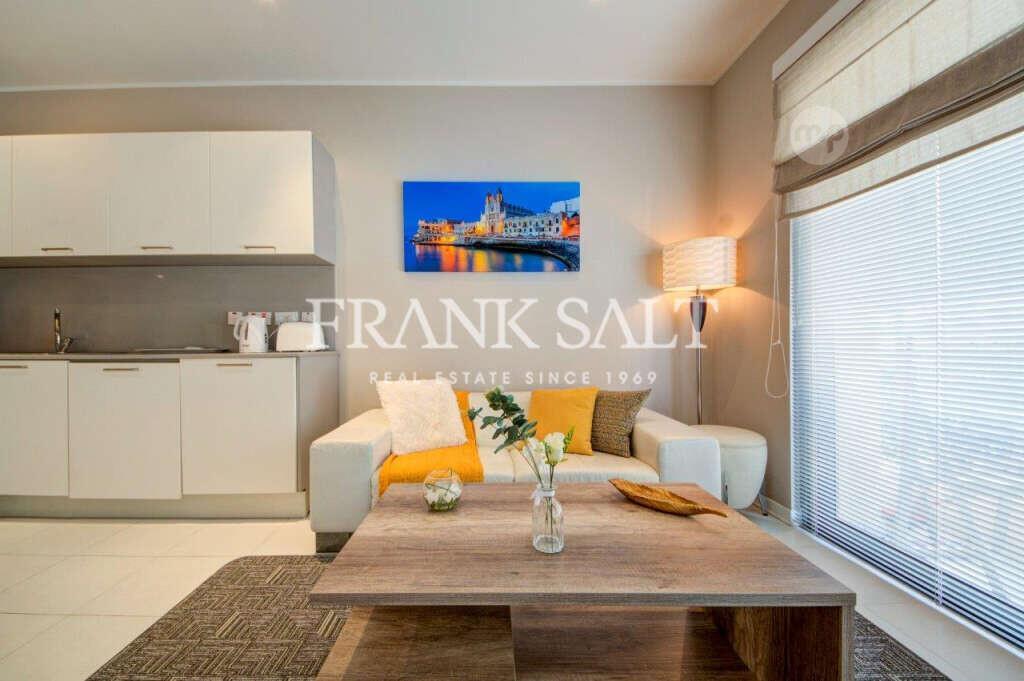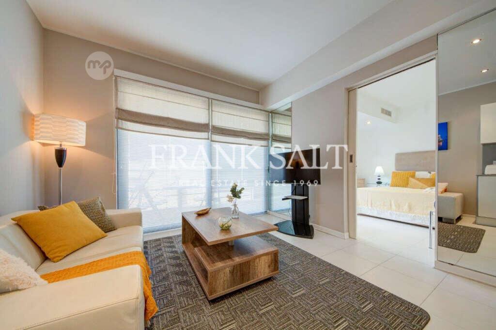 Luxuriously furnished apartment at Portomaso comprising all the comforts of a modern lifestyle, featuring an open plan living and dining area with a modern kitchen, a stylish bedroom, a contemporary bathroom, and a small balcony overlooking the beautiful Chinese Garden and the majestic Spinola Palace. The apartment is fully air-conditioned and equipped with a dishwasher, washing machine, and TV, while residents also have optional access to the exclusive Hilton Merkanti residential pool. Located just minutes away from St. Julian’s vibrant nightlife yet surrounded by luxury and tranquility, this property offers the ultimate bachelor’s pad. A dedicated car space is included in the price, completing this exceptional residence.