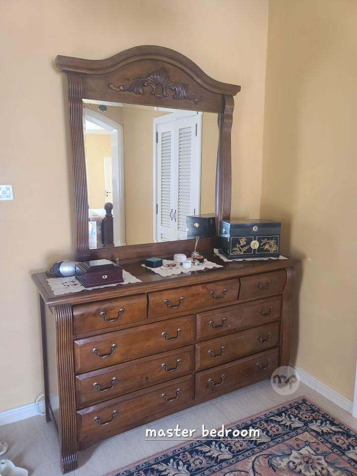 Double Bedroom comprising Super King size 220 x 220cm bed, His & Her Wardrobe, dressing table with drawers and very large mirror, Chest of drawers, 2 x bedside tables with lamps.