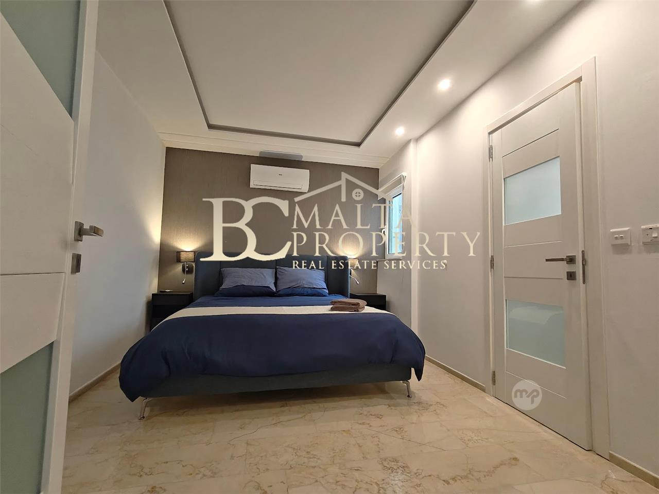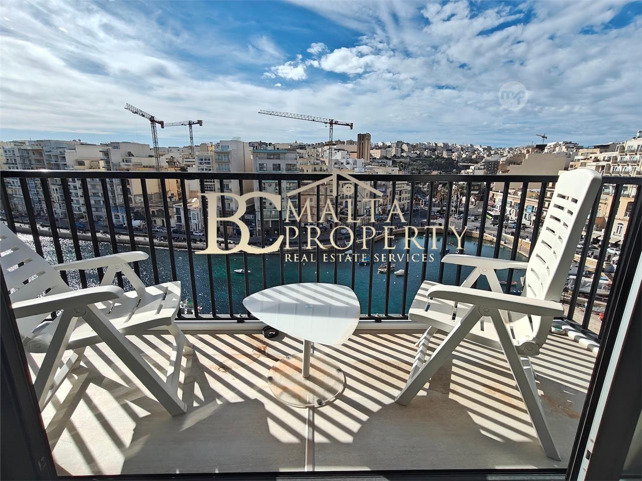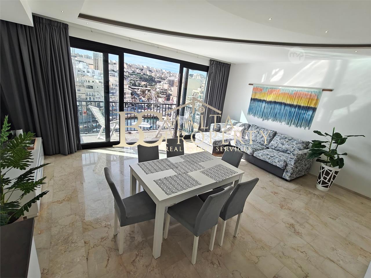 A 5th floor newly highly furnished and equipped 2 double bedroom / 3 bathroom (2 of which ensuite) apartment in a smart block with lift situated in an excellent area in Spinola with sea views over the Spinola and Balluta Bay.