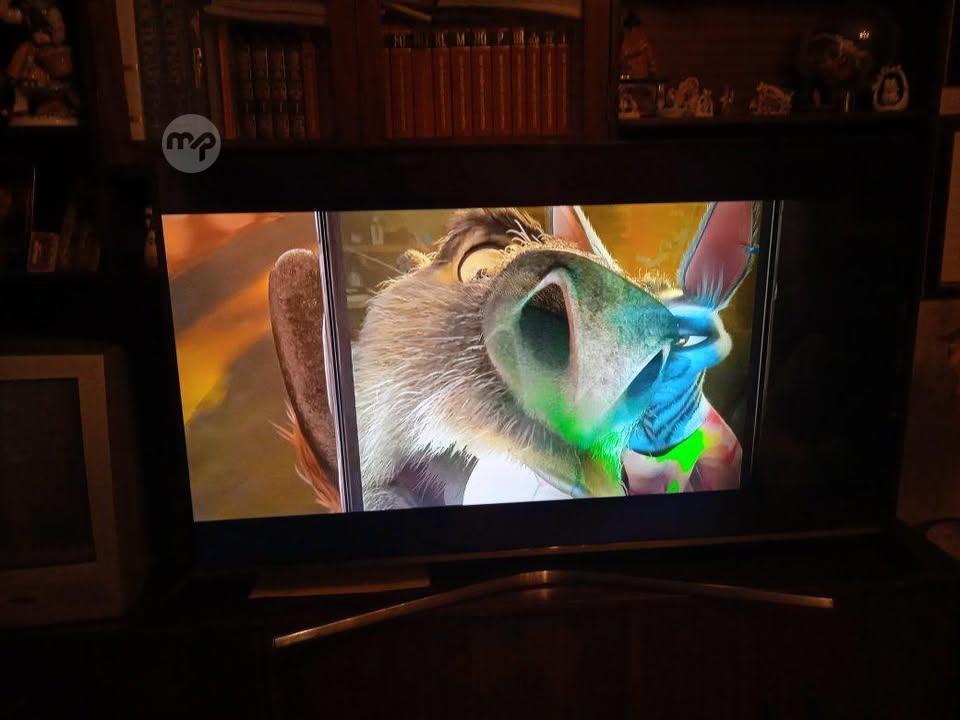 55 INCH SMART TV WITH REMOTE..IT WORKS ONLY ON THE RIGHT SIDE IT IS A LITTLE BIT DARKER BUT YOU CAN SEE THE PICTURE CLEAR..