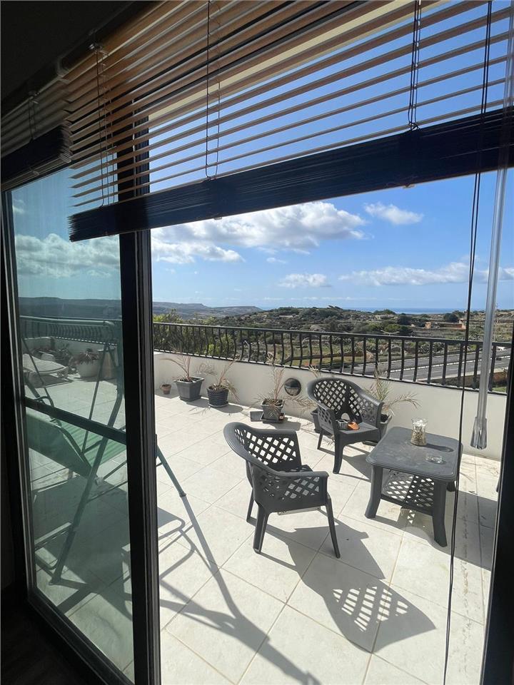 3 Bedroom Penthouse Mellieha 3-bedroom penthouse in a small block just off the Mellieha bypass commanding magnificent views across to Golden Bay and the surrounding area. Large L shaped terrace that surrounds the living area and kitchen dining with an abundance of natural light. 3 double bedrooms, main with ensuite and walk in wardrobe, another double bedroom that includes an office work space. Main large bathroom with bath and shower. In addition to the large terrace there is a private roof terrace with the same magnificent views and a washroom with ample storage. Beautifully furnished and includes all modern appliances. Airspace included. DIRECT FROM OWNER.