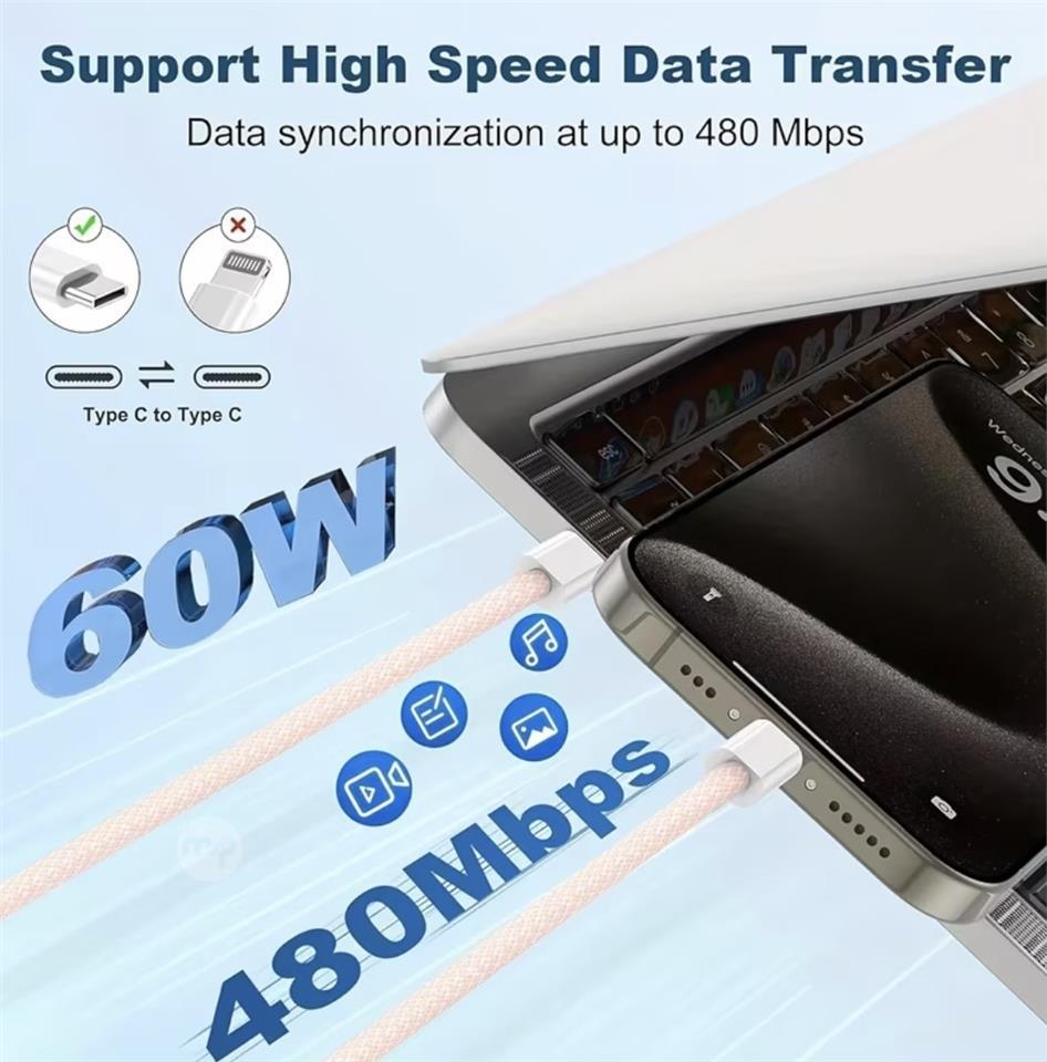 Original PD 60W Fast Charger USB C to C Type Cable Suitable for Apple for iphone 15/16/17 Pro/MAX Fast Charging Suitable for Samsung Xiaomi Cable, NNBILI