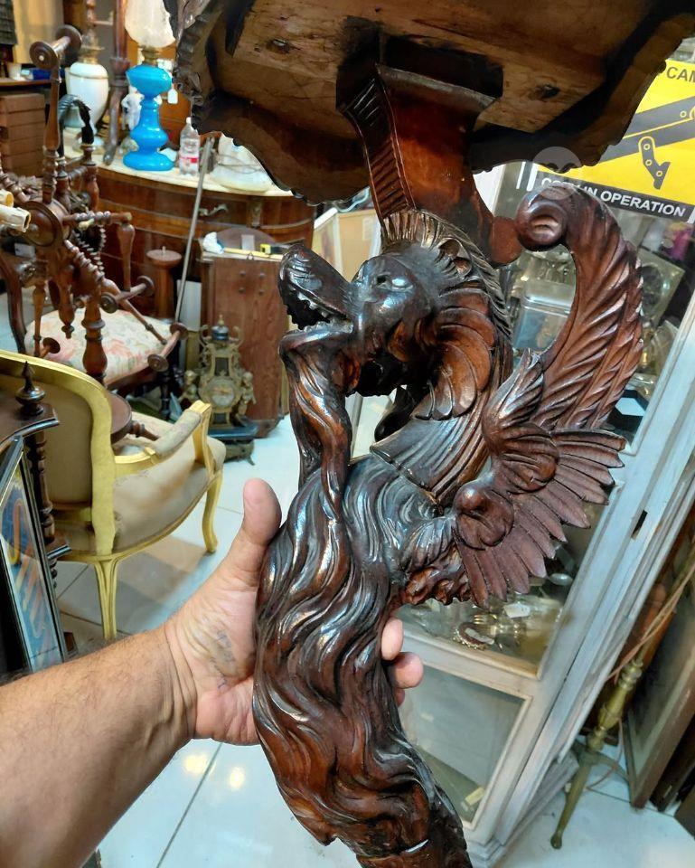 An Antique walnut renaissance dragon pedestal Fine Sculpture stand Showing Dra