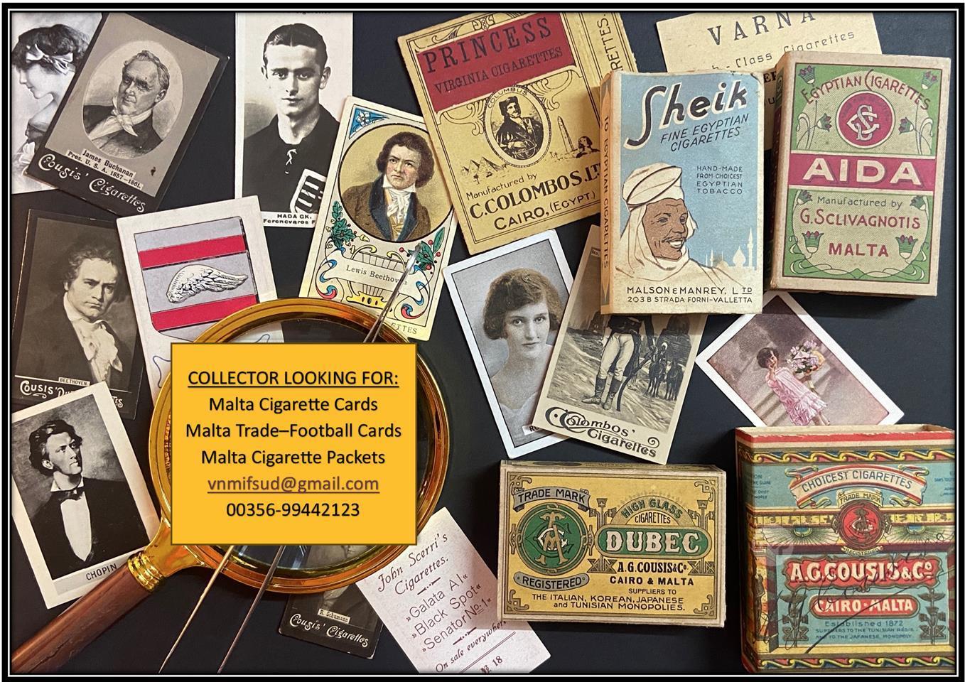 WANTEDMalta cigarette cards and packets