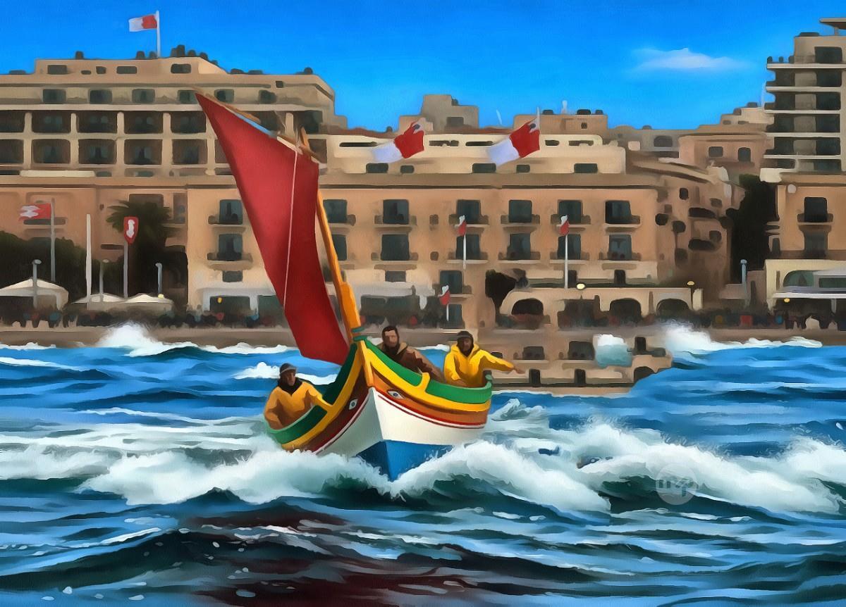 SAILING THE LUZZU ---- ORIGINAL HAND PAINTING OIL ON CANVAS 70X50