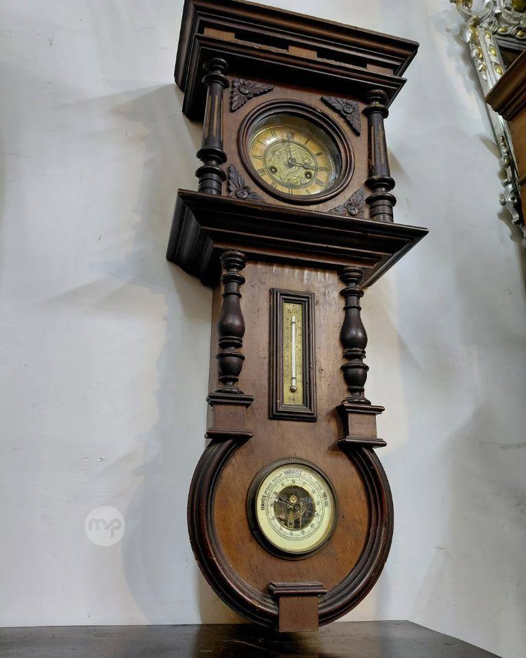 A Victorian Antique wall clock Combined with thermometer barometer Highly dec