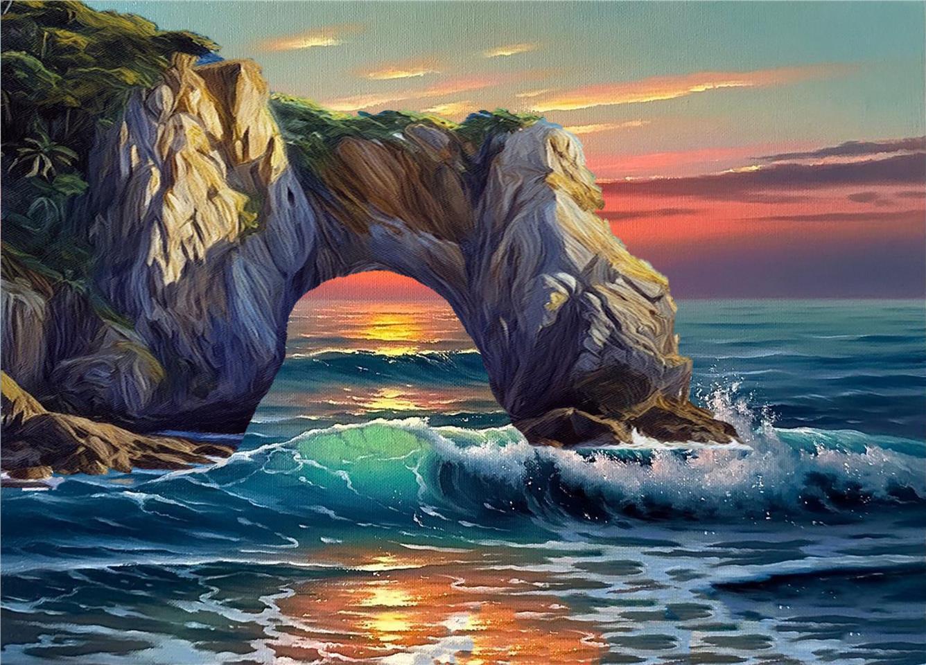 TWILIGHT ON AZURE WINDOW GOZO --- ORIGINAL HAND PAINTING OIL ON CANVAS 70X50