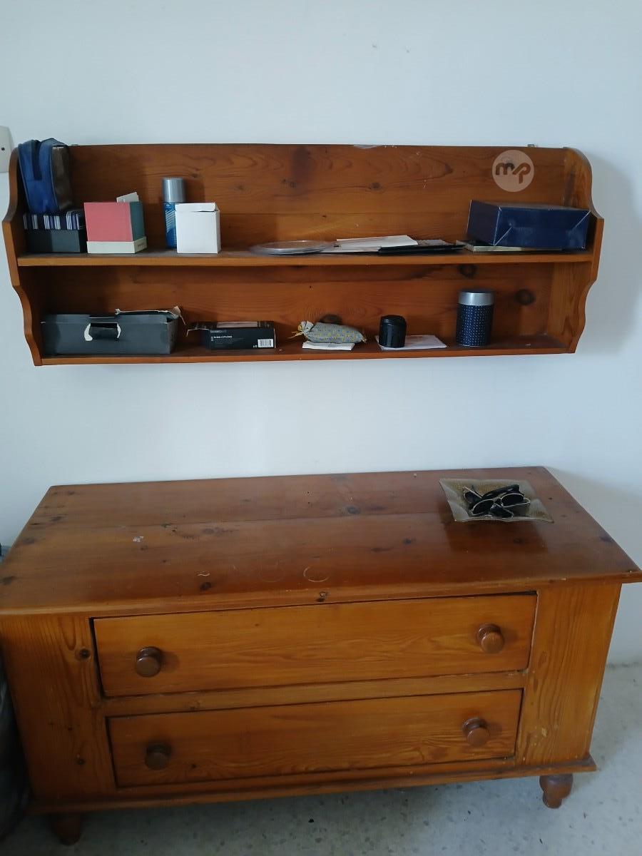 Old pine chest of drawers and shelf