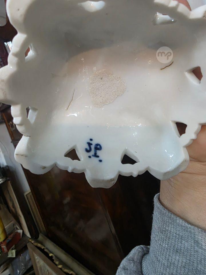 Pair Unusual antique porcelain vases featuring Rococo-style decorations such as scrollwork and rocaille shell-like motifs.