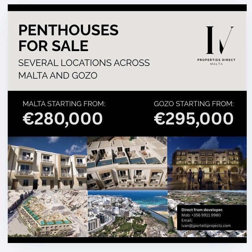 Last 2 remaining Maisonettes - Direct from Malta's leading Developer - 1/2/3 bedroom apartments direct from Malta s leading Developer on plan !! .