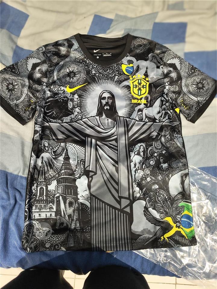The black Brazil football kit inspired by Christ the Redeemer. Size M, never been used before and price is negotiable