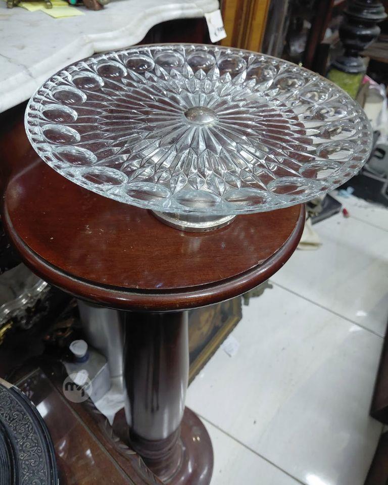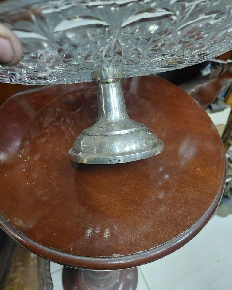 A MALTESE SILVER BASE Centerpiece With Crystals cut glass tray/Cake stand Mea