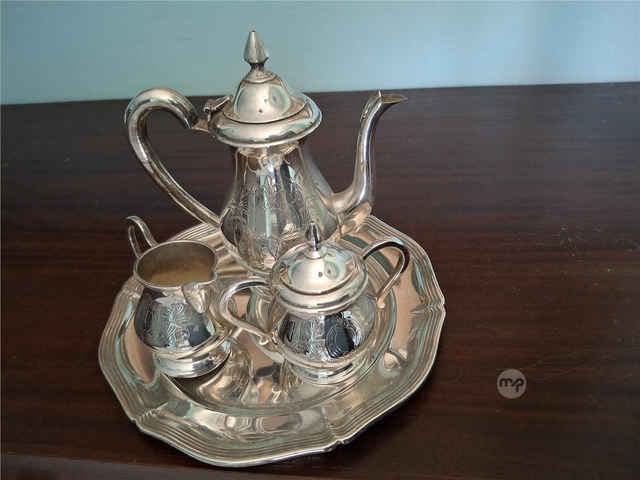 SILVER PLATED TEA SET WITH TRAY