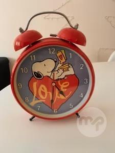 Large vintage alarm clock with Snoopy picture, works with C-size battery. Worth 90Eur.