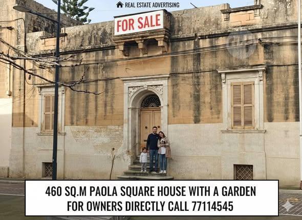 Unconverted House of Character in Paola Square – €1.2 Million Opportunity Discover a slice of Paola's iconic charm in this stunning House of Character nestled right in the heart of Paola Square, Malta.4/5 Bedrooms | 3 Bathrooms | 460 sqm.Well-sized garden with excellent potential to extend, build upwards, and add further floors. A one Car Garage available on request. This unconverted gem offers endless possibilities for customization, blending historic character with modern living. In excellent structural condition, it's eligible for UCA tax breaks – a smart investment for visionaries ready to create their dream home. For more details or to arrange a viewing, contact the owner directly at 77171703. Note: No agents or negotiators at this time