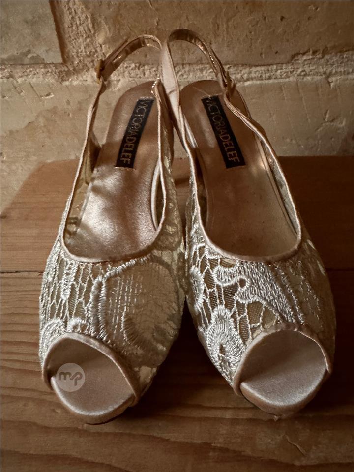 Comfortable heel, champagne color lace sandals size 38