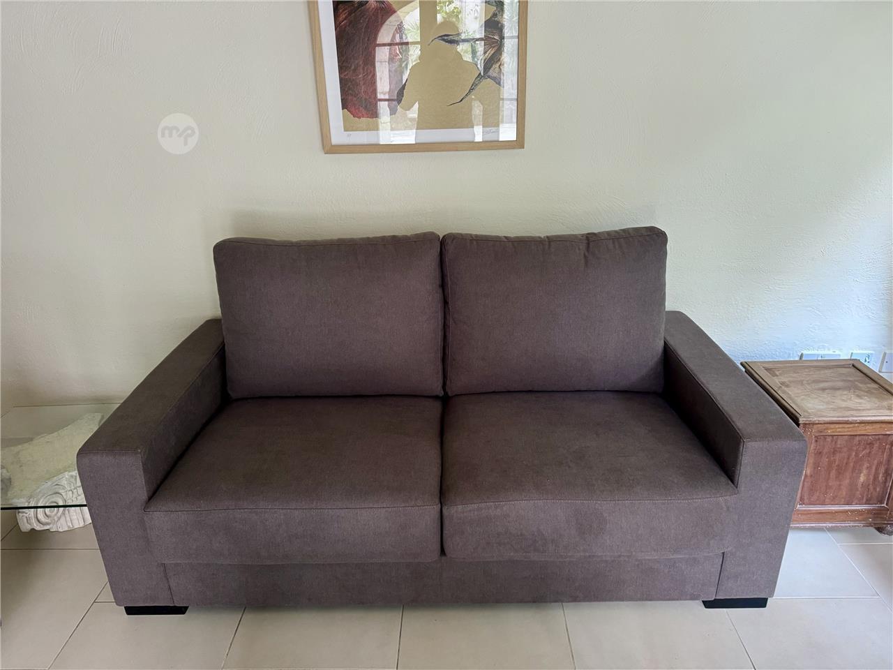 Never used. Grey sofa 180cm wide x 90cm deep. Very comfortable. Still under guarantee.