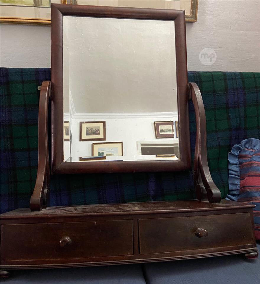 Antique Mahogany dressing table mirror having the original mirror plate, two drawers