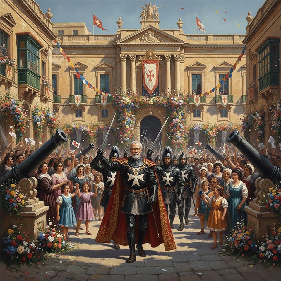 THE KNIGHTS OF MALTA, VICTORY ON THE TURKS --- ORIGINAL HAND PAINTING OIL ON CANVAS 70X70