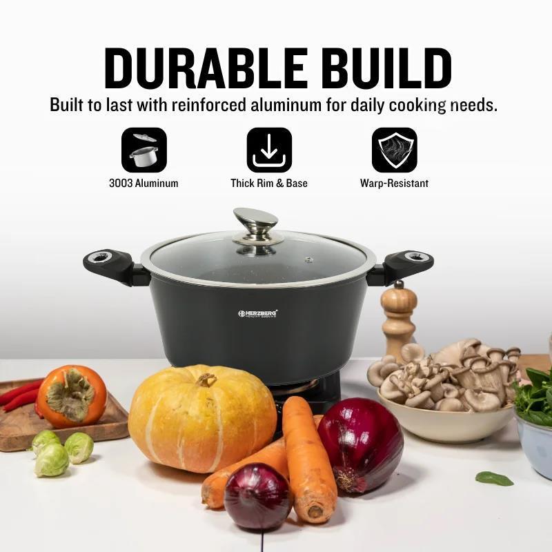 Herzberg HG-METBK15 15-Piece Marble Coated Cookware Set - Black (CLEARANCE)