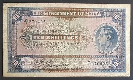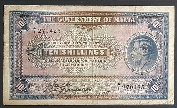 MALTA - GOVERNMENT OF MALTA GEORGE VI TEN SHILLINGS 10/- BANKNOTE signed PACE