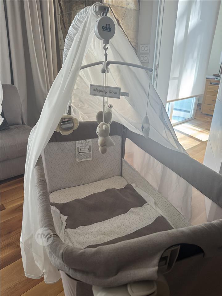 It includes: metal frame, removable rod for net and mobile, soft mattress (L 85 – W 50- H 3),