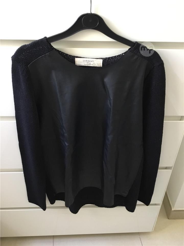 Black fake leather front. Knit back and sleeves