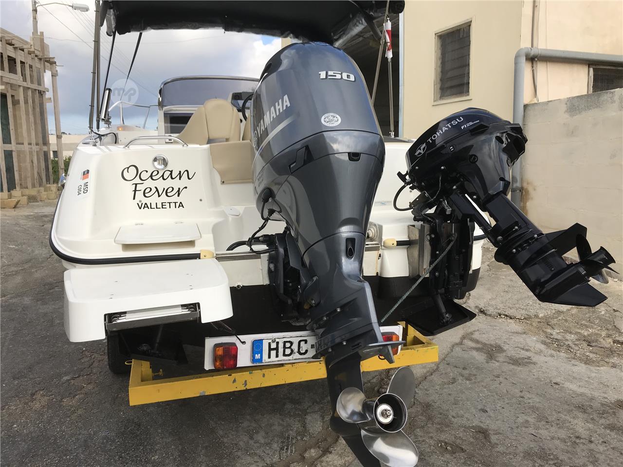 A well kept and maintained, one of a kind Karnic model Sundeck 2052 boat, powered by a Yamaha F150 horsepower outboard (339 hours) and a Tohatsu 20 horsepower outboard MFS20E with electric starter (199 hours). Both always professionally serviced. Lots of extras, including a 9 inch Simrad NSS Evo 3 fishfinder/GPS, a one kilowatt (high/ wide) through hull transducer, auto pilot system, marine toilet with electric flush system, electric anchor winch, Lenco electric trim tabs, automatic bilge pump, integrated life bait well, and many more extras. Also included is a galvanized trailer.