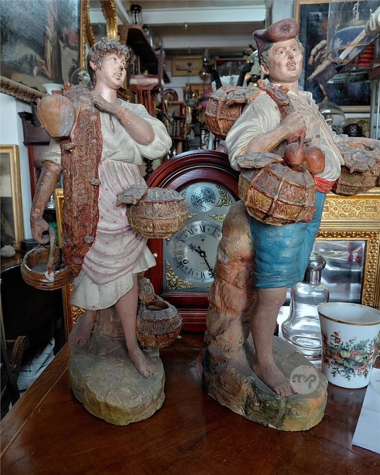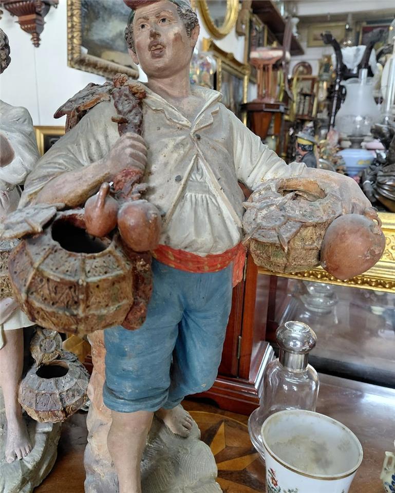 Pair Antique Napolitan Terracotta Figurines Showing Street vendors Measures 50 cms long Price of 240 euros for the pair 99456526