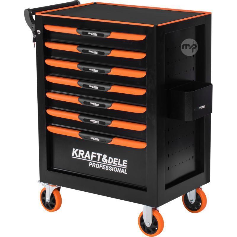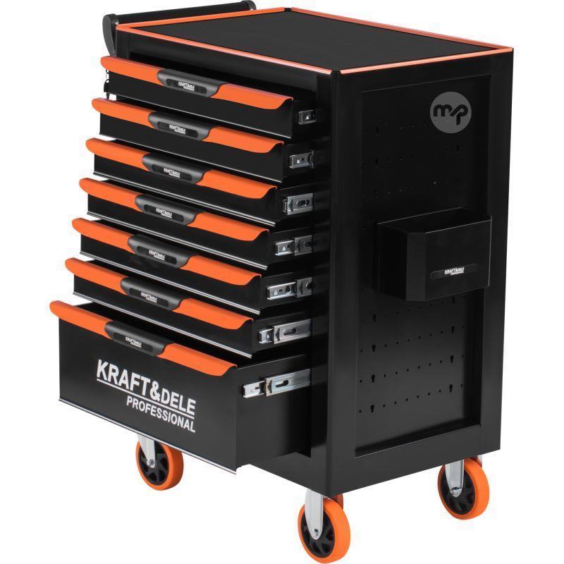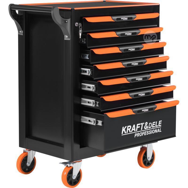 The KRAFT&DELE KD1079 professional workshop cabinet is a sturdy and functional tool storage solution. Equipped with seven spacious drawers with foam lining, it keeps accessories organized and safe. With a steel top resistant to damage and chemicals and locking casters, this cabinet is a perfect addition to any workshop.