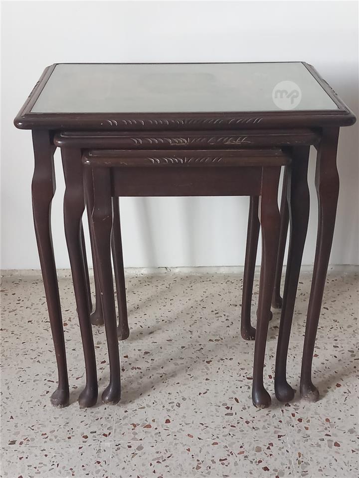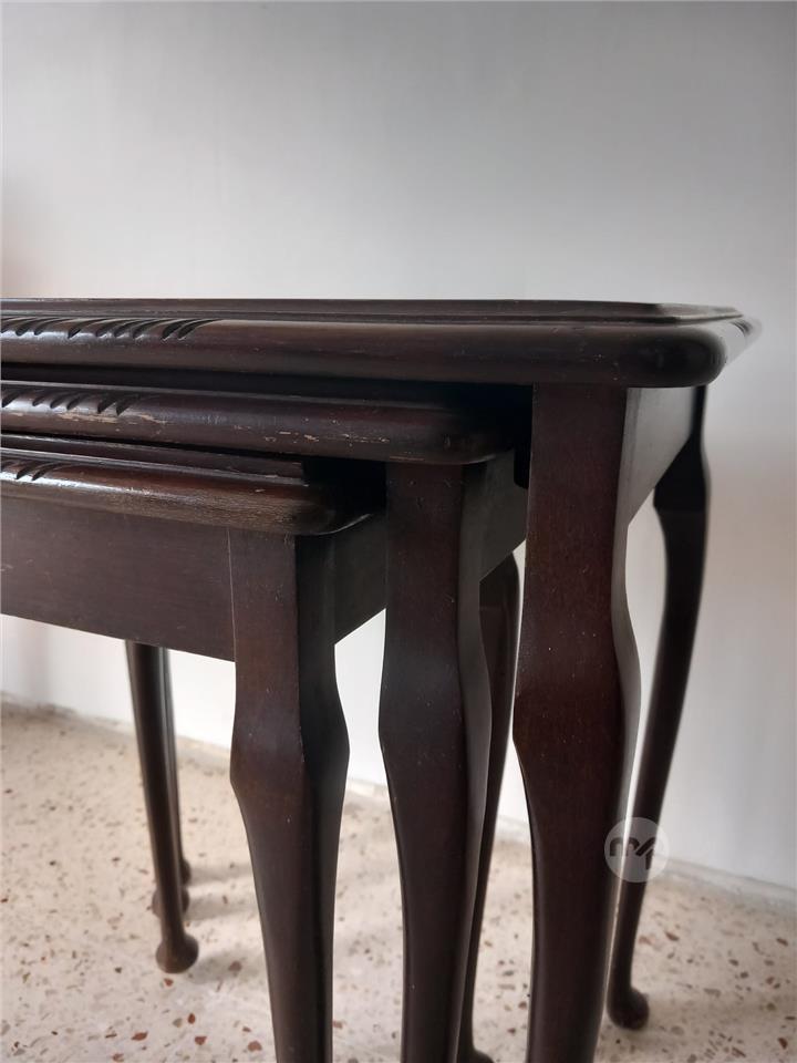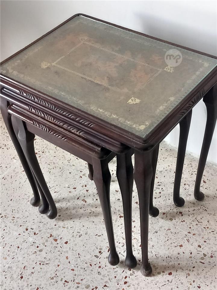 Antique Set of three nesting Tables with Queen Anne Style Legs and leather Top. View all Pictures