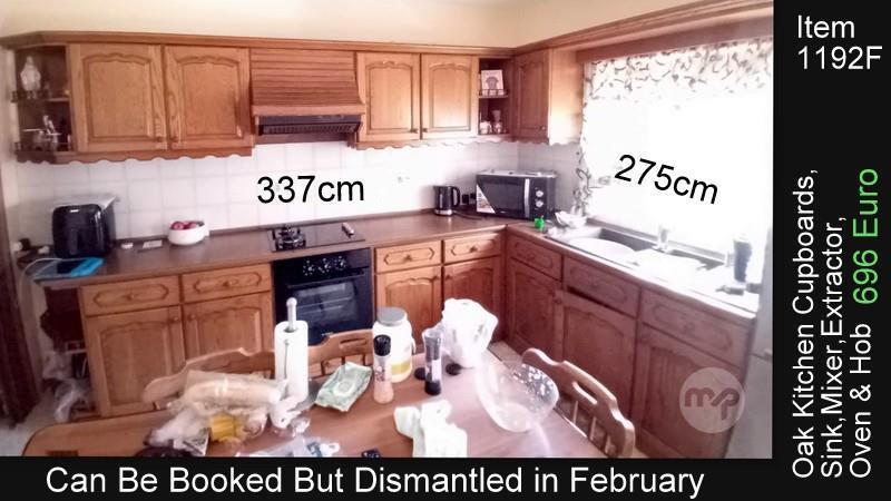 ( 1192F ) OAK KITCHEN CUPBOARDS INCLUDING SOME APPLIANCES