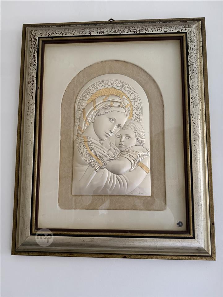 Leader Argenti 925 Sterling Silver Madonna & Child Icon – Large Framed Piece