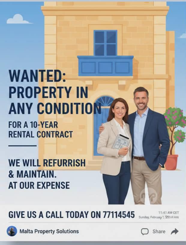 WANTED . Seeking HOUSE / TOWNHOUSE / MAISONETTE in South or Central Malta! We're on the hunt for a LONG-TERM RENTAL ✅ LONG LET: 10+ years commitment – stability you can count on!