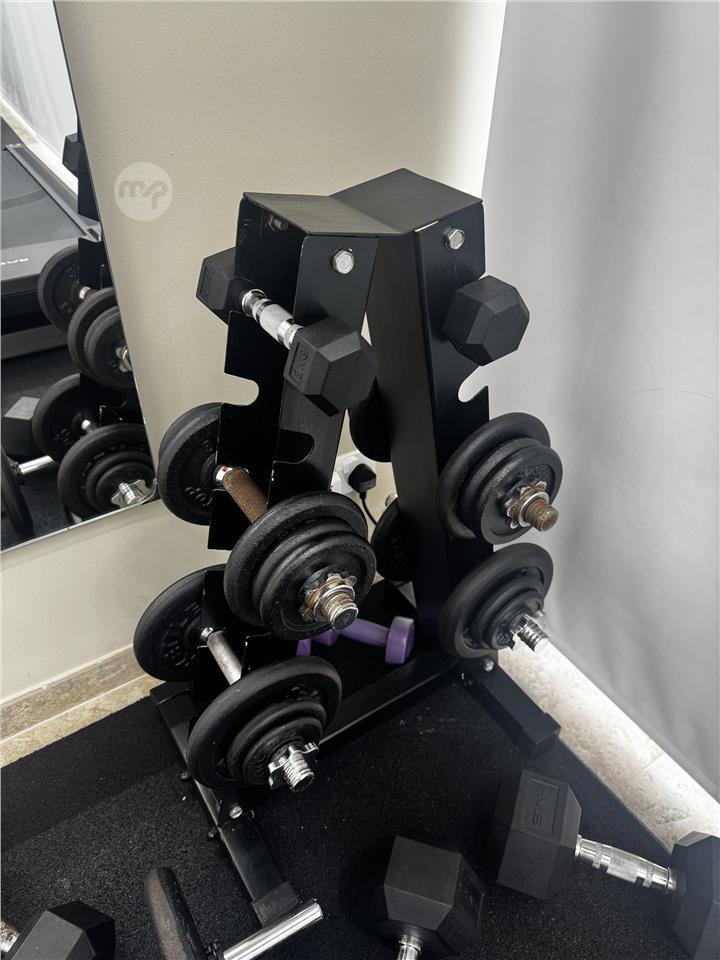 Very good dumbell rack, can hold up to 6 pairs of dumbells depending on the size. (Dumbbell's not included)