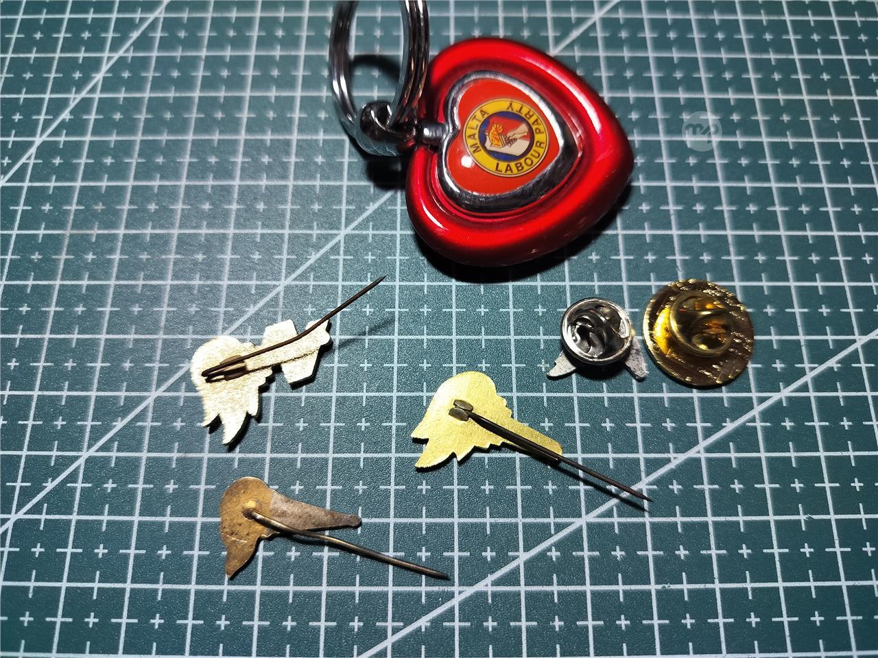 Vintage One Keychain .. 5 pin badges Labour Party (Malta)