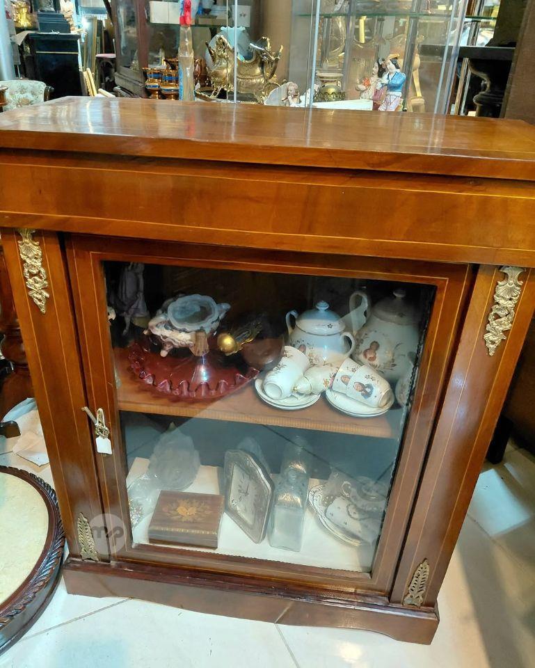 A French style one door showcase String inlay One shelve Measures 80x35x100