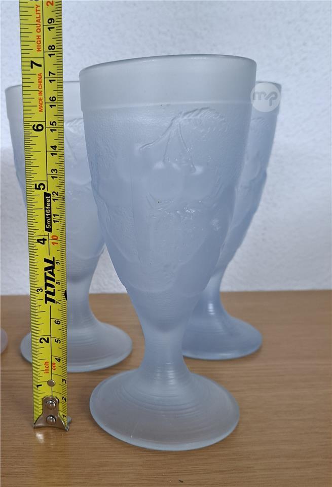 A set of 6 tall glasses 3 in pink and 3 in blue.